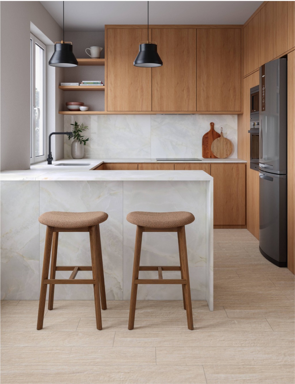 Micro 3D technology is the unique feature that enhances the beauty of finishes without sacrificing practicality. It adds depth and texture to surfaces, creating visual experiences that don’t just cover surfaces but transform spaces. These effects help turn spaces into more welcoming environments, ready to host and share moments. From urban chic to natural warmth, each series expands the possibilities and makes the process of choosing and combining easier.